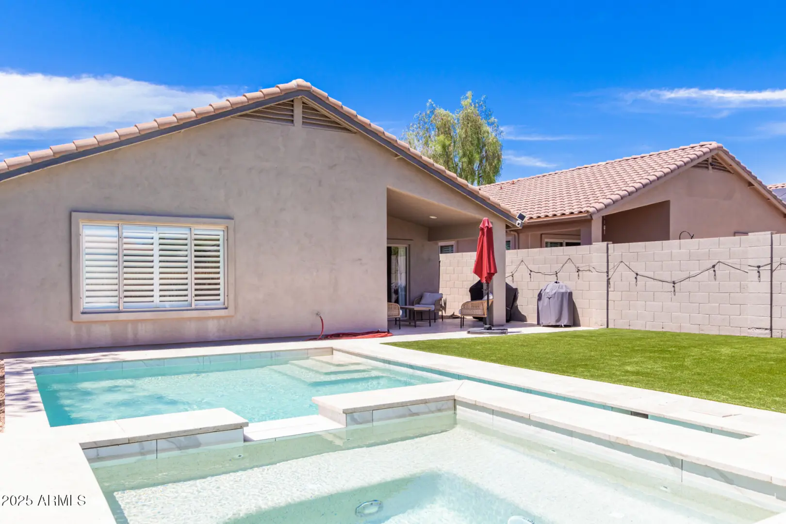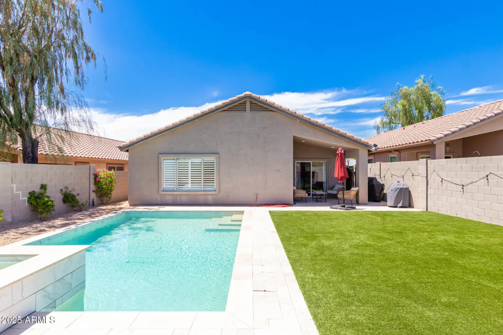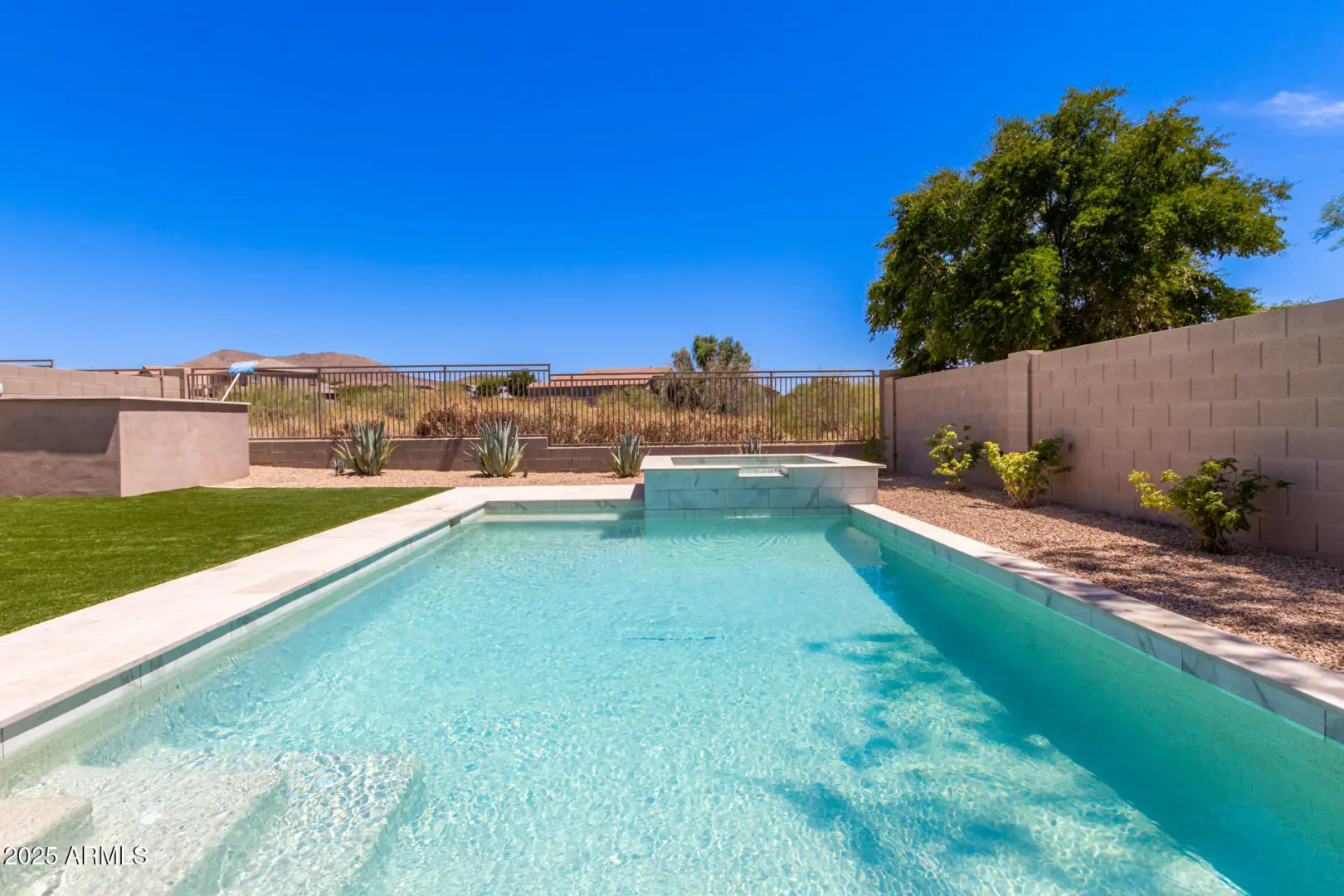 Great furnished home located in McDowell Mountain Ranch! This home is light and bright with beautiful finishes that include shutters, wood-like tile flooring throughout and a chef's kitchen with white cabinets, quartz countertops, subway tile backsplash, and stainless steel appliances. The primary bath is stunning with marble tile flooring & shower giving the room a spa-like feel. The backyard features a pool, spa, and artificial turf and backs to a wash with mountain views for you to enjoy! Close to 101, Scottsdale dining and entertainment! Rate shown is for one year. Shorter term rates are available.
