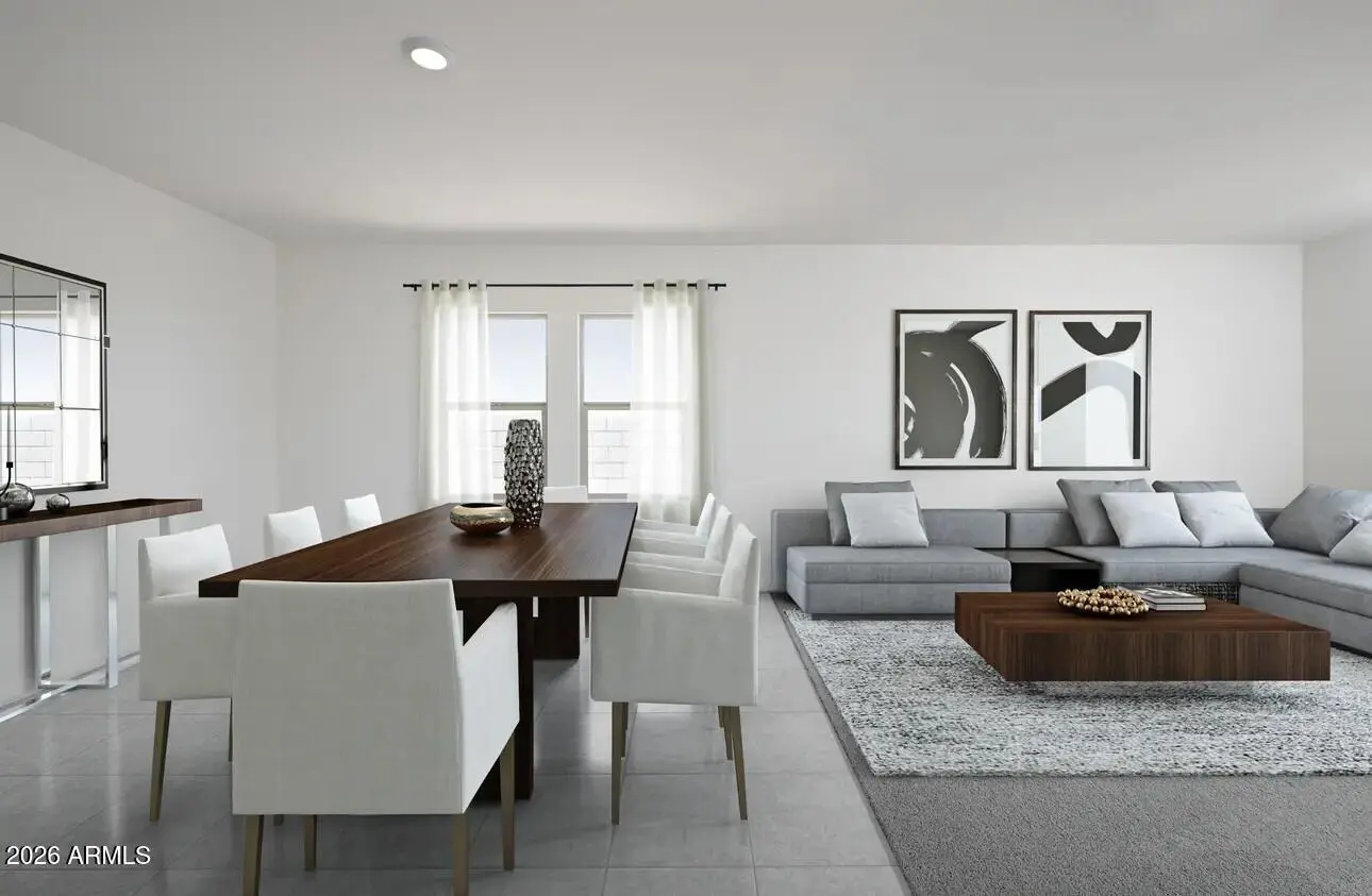 Beautiful NEW Home in in the highly desirable San Tan Valley area, close to major cities. MAY 2026 Move in. North/South exposure, bordering common area. Overlooking scenic desert views. Featuring countless upgrades such as 9' ceilings, Shaw Ceramic Tile Floors, Granite countertops in the kitchen. Whirlpool Stainless steel appliances and white cabinetry. Energy-efficient features throughout, Wi-Fi & programmable thermostat, and electric range. Spacious walk-in closet in owner's suite! Front yard landscaping with irrigation included and generous covered patio in the backyard. Minutes from hiking trails and scenic mountain views! Fantastic amenities such as a kids pool, splash pad, fitness loop, clubhouse, fitness studio, industrial kitchen, outdoor patio with fire pits and grill &
