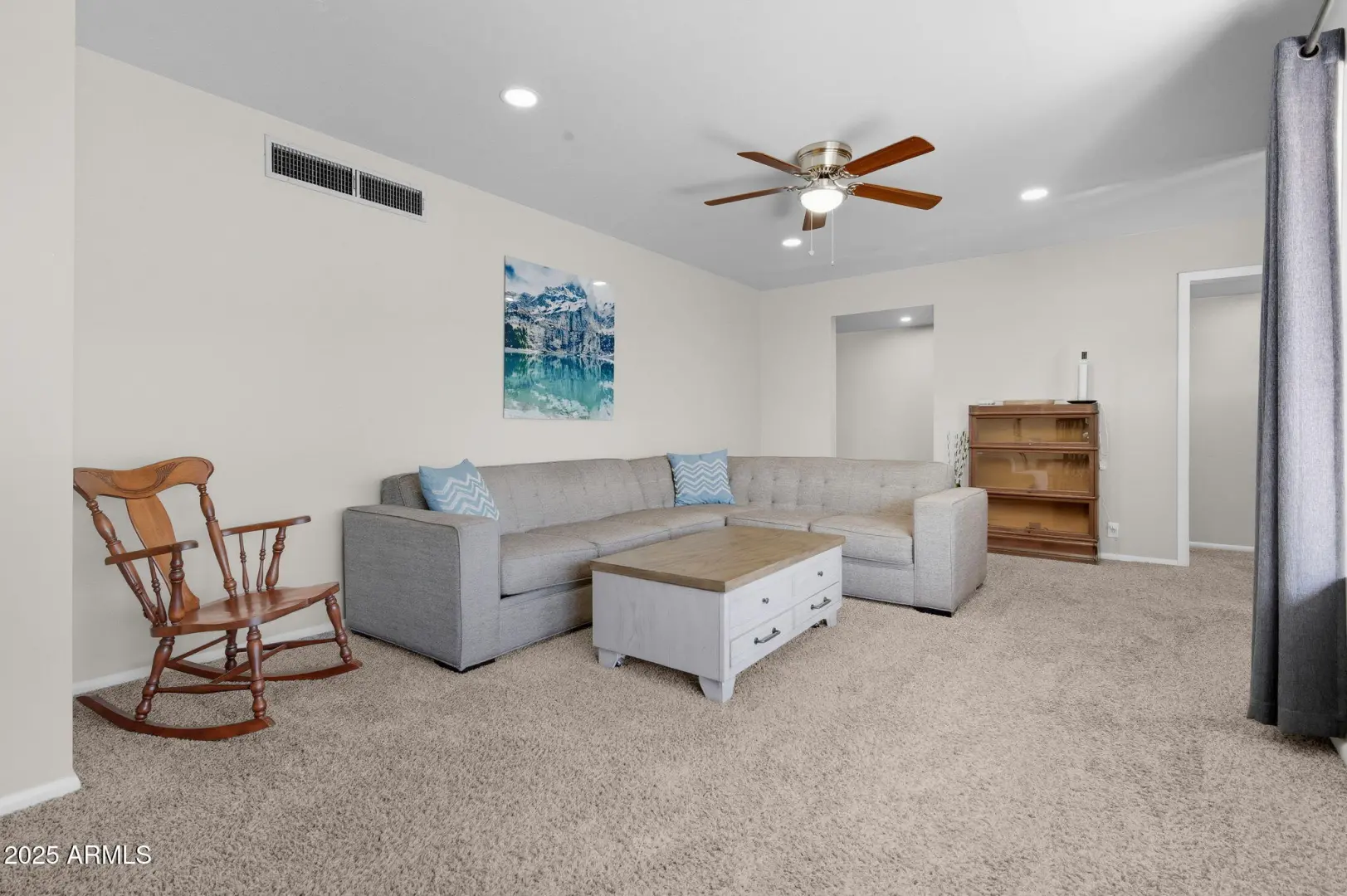 This spacious, inviting home sits on a huge corner lot. Step inside to a bright living and dining area featuring a built-in hutch that adds timeless character. The kitchen offers ceiling-height cabinets and a nook perfect for casual dining, with a large laundry room nearby that includes a utility sink and excellent storage/pantry options. The family room overlooks the expansive backyard and covered patio, ready for creating an outdoor retreat. The home features four bedrooms, including a versatile bedroom/office just off the kitchen. One of the two bathrooms has been recently updated with modern finishes and a stylish shower enclosure. The large garage adds even more convenience, making this home a perfect blend of charm and functionality in a great midtown neighborhood.