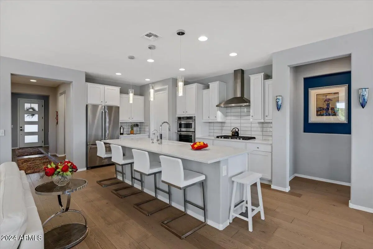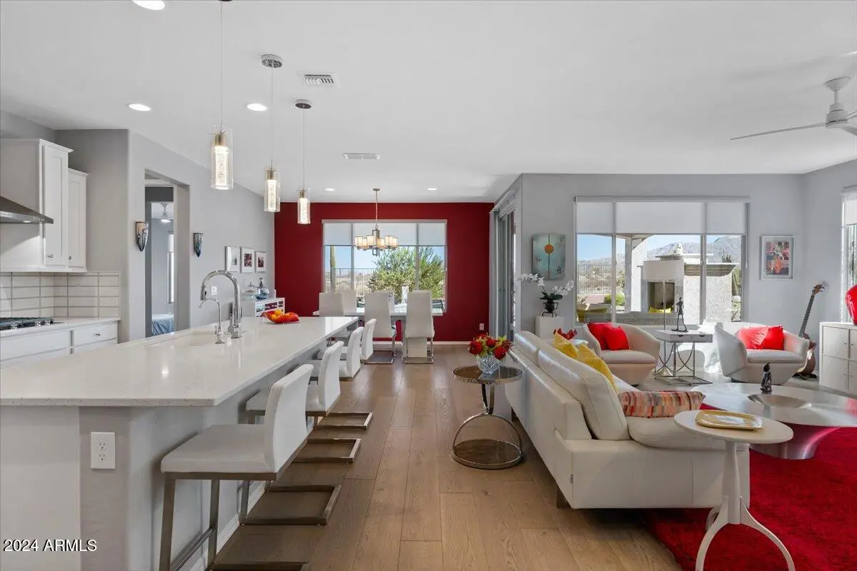 If you've been considering a 55+ active adult community in Arizona, and Sun City Festival is on your list for all it's fantastic amenities, then you will want to see this gorgeous and upgraded 3 bed 2 bath home that has some of the best views in the community as it backs to the White Mountains preserve looking east. Stylish and modern upgrades to the large chef's kitchen, flooring, and much more make this is a home that is truly turn-key. Whether as a second home or your year-round residence, this home has the style and finishes you deserve. Also, the leased solar helps lower your electric bills substantially. Imagine yourself sitting on the patio and taking in the beautiful open land and mountain views backed by that gorgeous Arizona sky. Your new home awaits!
