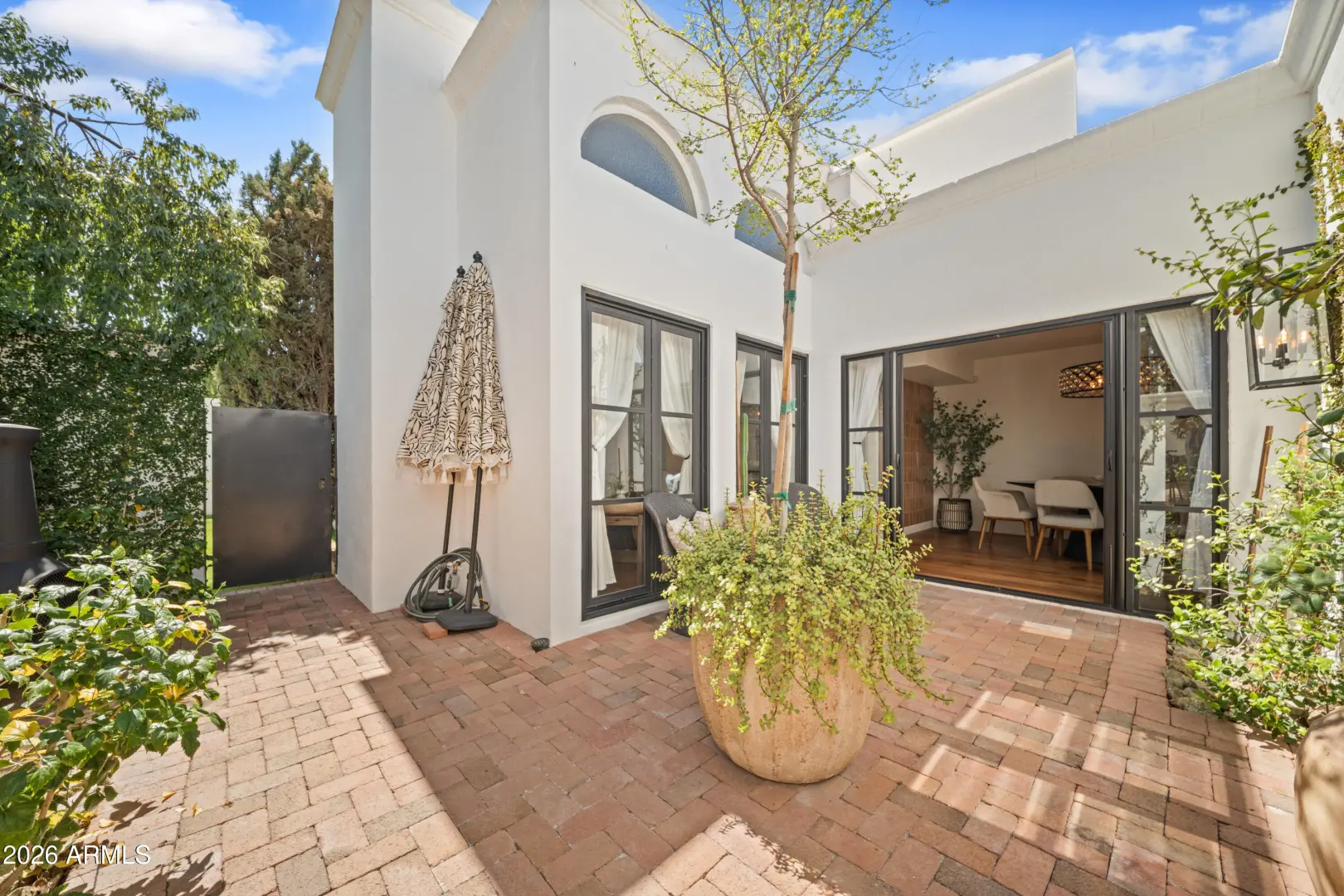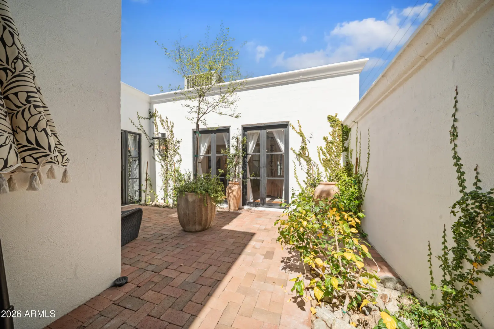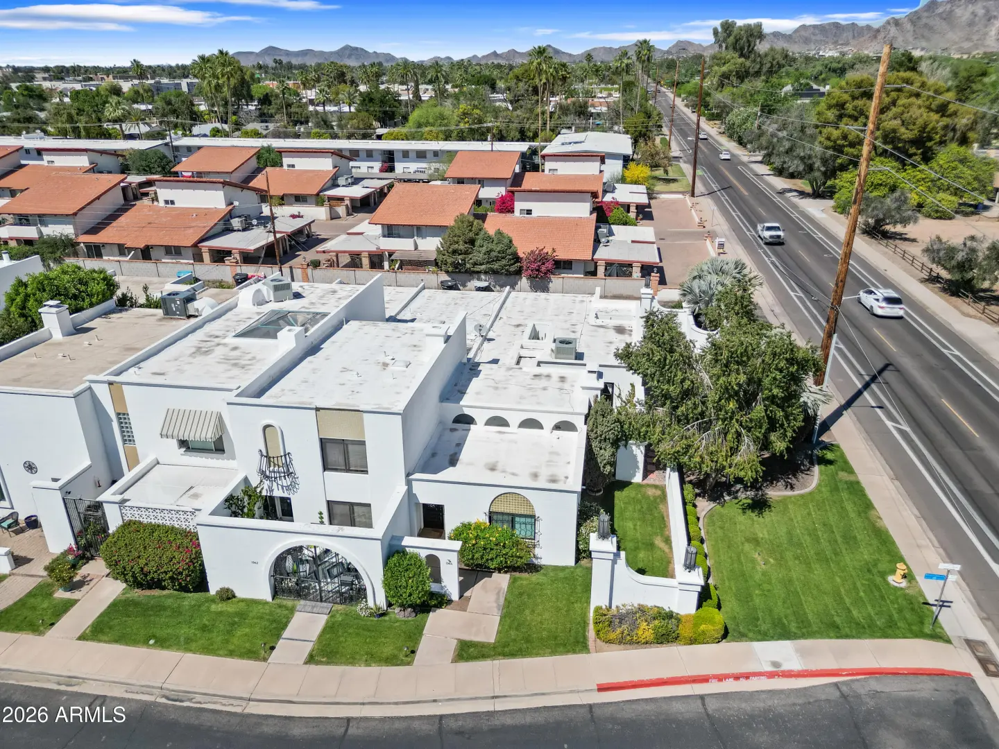Welcome to Royale Gardens II, an elegant Mid-Century Modern community in North Central Phoenix designed by renowned architect Ralph Haver. This 2 bed, 2.5 bath updated home features clean architectural lines, expansive windows and light-filled living spaces. The interior has been modernized with a remodeled kitchen and bathrooms, and high-end wood flooring throughout. The new roof and mechanicals offer peace of mind. Royale Gardens II is known for its architectural character, mature landscaping, and quiet setting. The community's focal point, the stunning Mid-Century Lanai and elliptical pool have been captured in art for decades. Conveniently located near the Central Corridor, Uptown, and the Biltmore, with easy access to dining, shopping, and entertainment.