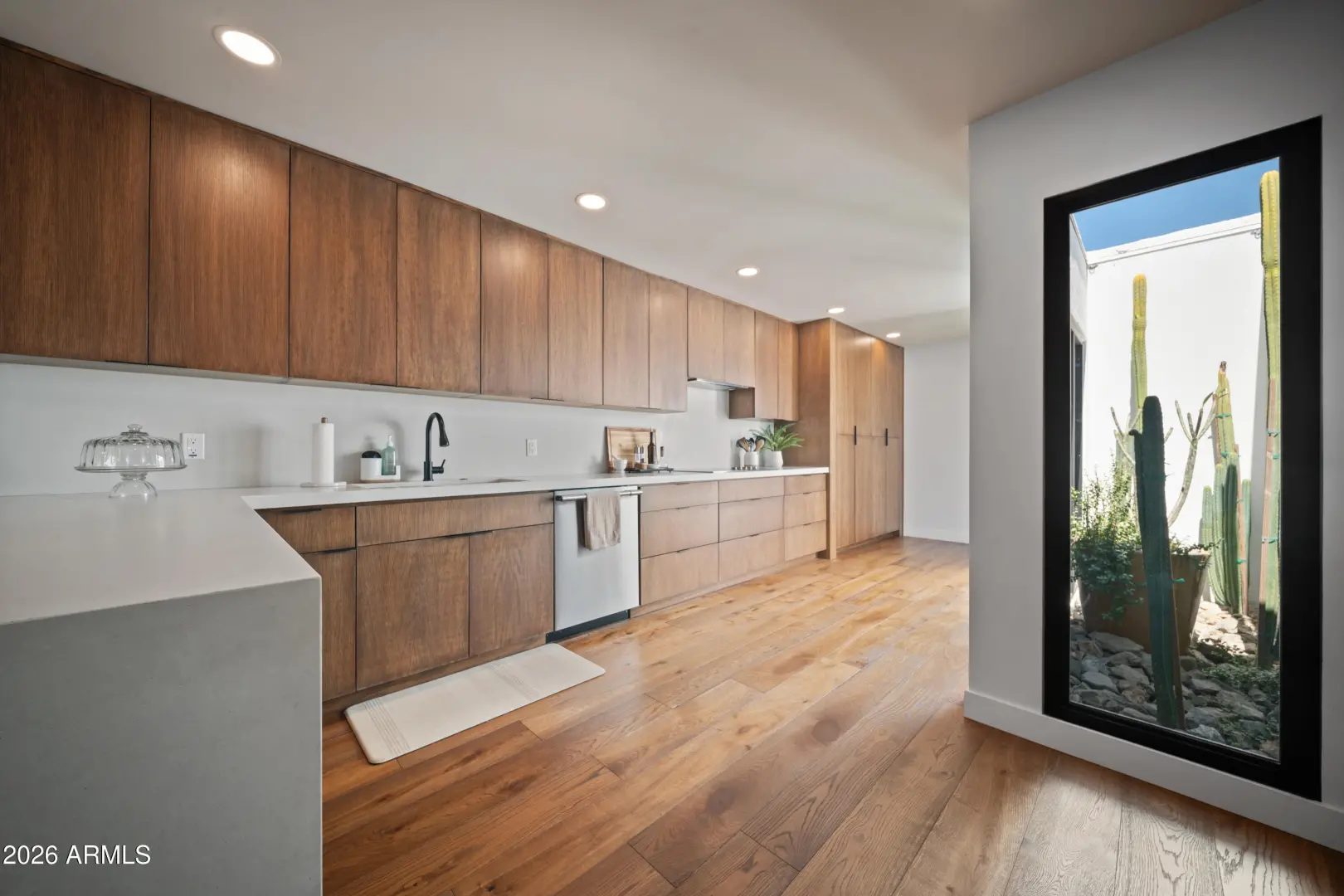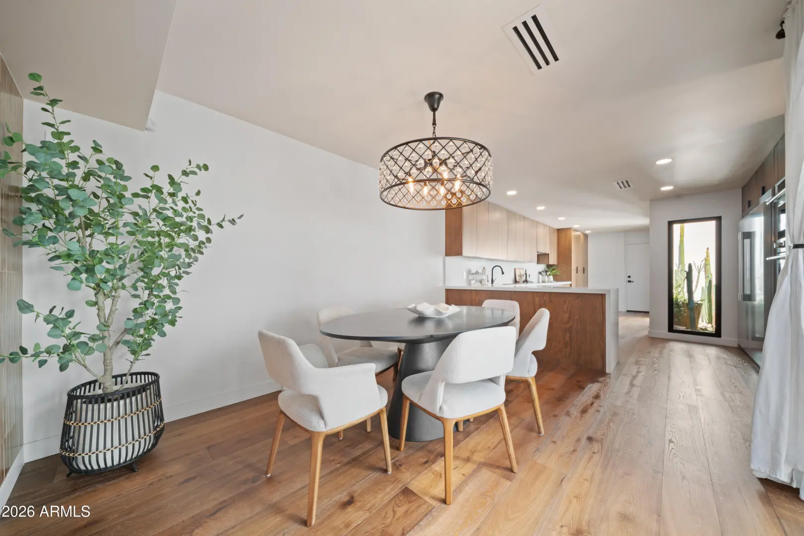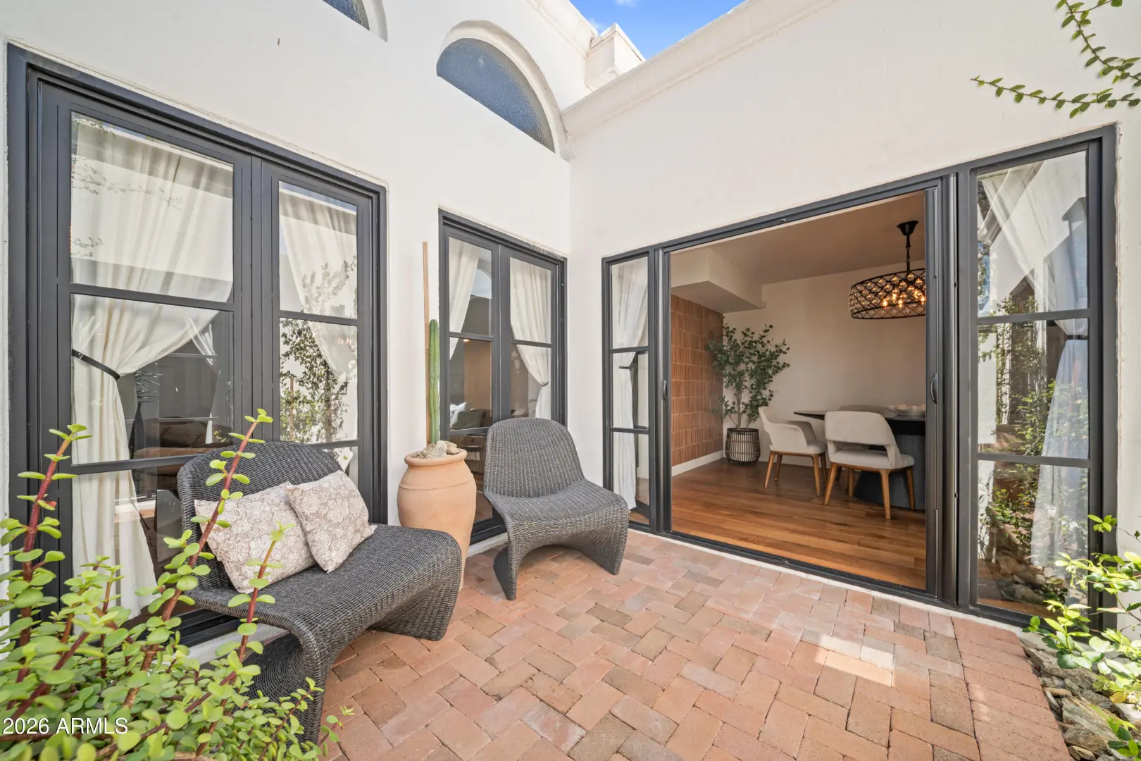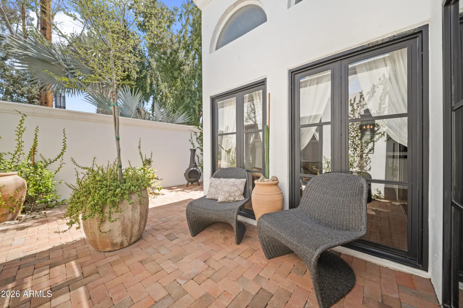 Welcome to Royale Gardens II, an elegant Mid-Century Modern community in North Central Phoenix designed by renowned architect Ralph Haver. This 2 bed, 2.5 bath updated home features clean architectural lines, expansive windows and light-filled living spaces. The interior has been modernized with a remodeled kitchen and bathrooms, and high-end wood flooring throughout. The new roof and mechanicals offer peace of mind. Royale Gardens II is known for its architectural character, mature landscaping, and quiet setting. The community's focal point, the stunning Mid-Century Lanai and elliptical pool have been captured in art for decades. Conveniently located near the Central Corridor, Uptown, and the Biltmore, with easy access to dining, shopping, and entertainment.