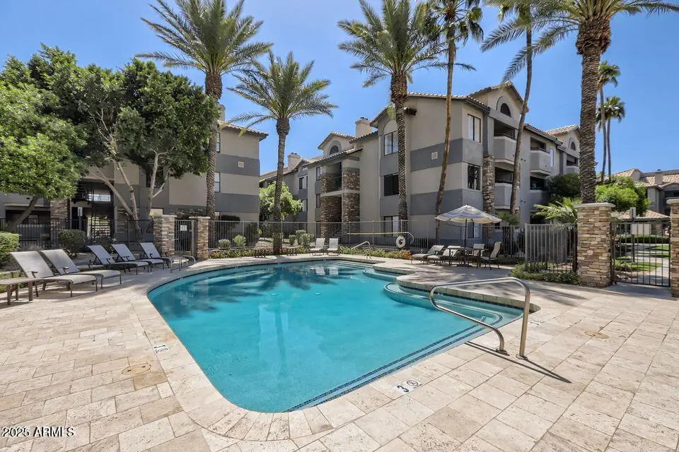 Welcome To Dakota at Camelback - Gated, Resort Style Living Near The Biltmore Area of Phoenix. Well Cared For, Top Floor Condo, Features 2 Bed 2 Bath, Laminate Wood & Tile Flooring Throughout, Open Airy Ceiling In Living Area, Dedicated Dining Area Off Kitchen, Granite Countertops and Stainless Steel Appliances. Primary En-Suite Has Shower-Tub Combo With Sliding Glass Door & Oversized L-Shaped Closet. Main Bathroom Updated With Walk-In Shower & Glass Door. NEW: Windows (2020) - AC-Air Handler (2020) - Washer & Dryer (2020) - Water Heater (2021) - Interior Paint (2025)- Enjoy The AZ Sunsets on West Facing Covered Patio Upgraded with Roll-Up Sun Shade. Amenities: 2 Community Pools, Hot Tub, Fitness Center & Fire-Pit. Conveniently Located Near Whole Foods, Trader Joe's & Easy Access to SR 51