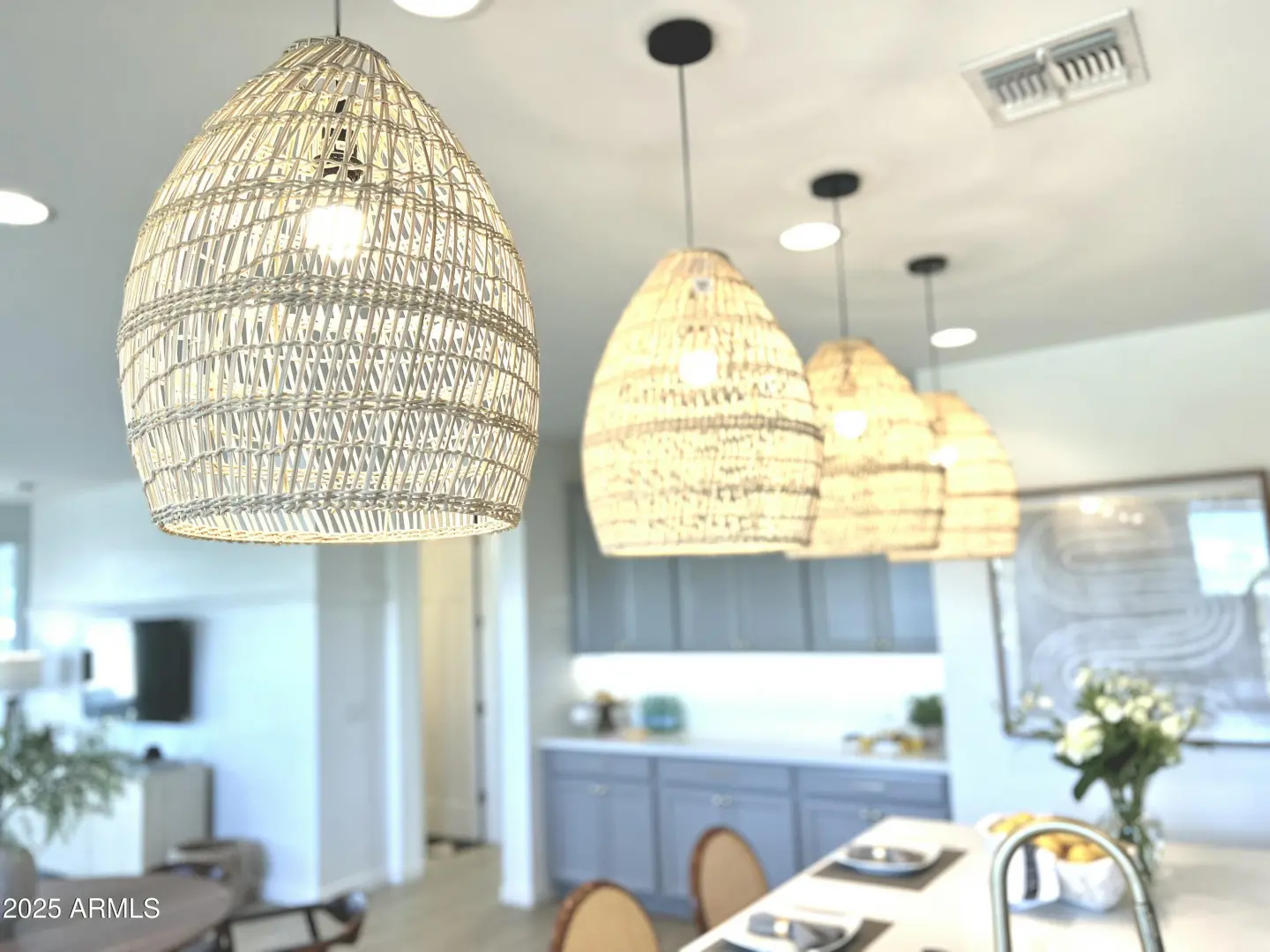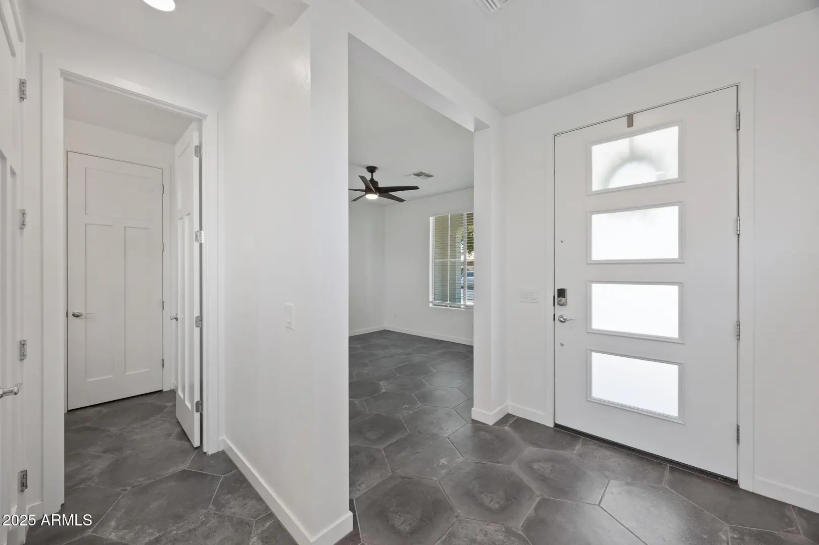 Why settle for builder basics when this home nails the lifestyle upgrade? Perfectly situated next to a lush greenbelt, you get all the perks of a giant yard-football tosses, bike rides, even picnics-without the mowing. Keep an eye on the fun right from home! Inside, the open great room is party-ready with designer touches like hex tile & wood-plank floors. Need space? A bonus storage room flexes as a craft cave, office, or snack pantry. Out back, turf + bougainvillea mean low-maintenance beauty, plus no neighbors behind for max privacy & sunset views. Shop, dine, play, and jet-this home puts it all within reach! Just 1 mile to Costco, 2 miles to QC Marketplace & 4 miles to SR-24, and only 5 miles to Mesa Gateway Airport. Convenience, fun,and travel at your doorstep!
