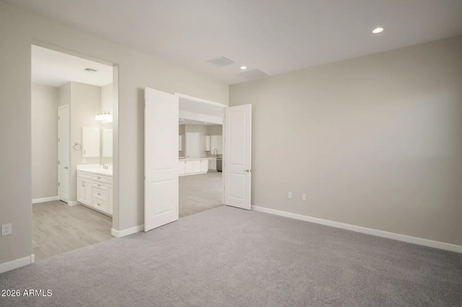 4 bed/ 3 bath single level in a GATED COMMUNITY built in 2021. Open floor plan features an oversized quartz kitchen island, luxury finishes, walk-in pantry, split floor plan, and ensuite in one of the guest bedrooms. The master suite features a enormous walk-in shower, double vanity, and walk-in closet. Open the massive sliding glass doors to create an indoor/outdoor living experience with the perfectly manicured backyard, perfect for entertaining. Community features include ramadas, bocci ball, playground, BBQ's, grass fields, walking trails, and gated entry. Easy access to 101 and 51 freeways.