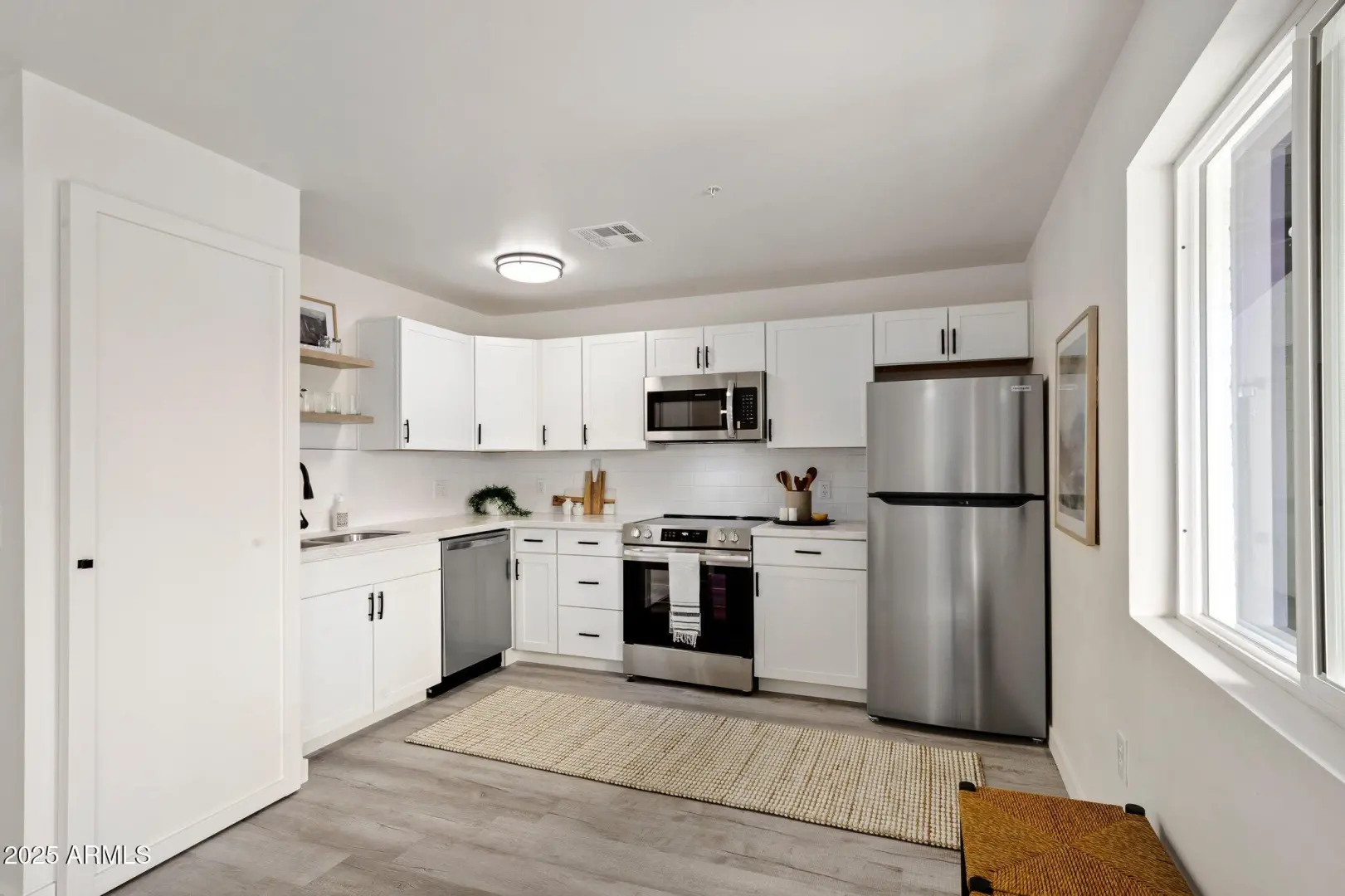 Experience fully furnished, luxury living in the heart of Old Town Scottsdale. This newly rebuilt 2-bedroom, 1-bath home offers the perfect blend of style, convenience, and comfort—just minutes from Hotel Valley Ho, Scottsdale Stadium, Fashion Square, Old Town's entertainment district, restaurants, and galleries. The interior was redesigned with a modern, upscale feel, featuring luxury vinyl plank flooring, quartz counters, white shaker cabinetry, subway tile finishes, upgraded fixtures, and an in-unit washer and dryer. Everything inside feels fresh, new, and thoughtfully curated. Each unit comes fully furnished with quality furniture, décor, linens, silverware, cookware, and all household essentials—making move-in effortless and ideal for renters who want a beautiful, turnkey