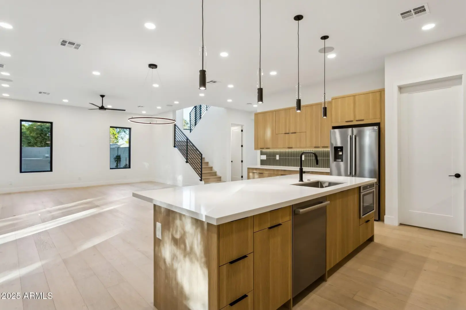 SELLER FINANCING AVAILABLE-Discover Casa Azul—a bold blend of high-performance design, intuitive technology, and modern luxury, all wrapped into a sleek single-story retreat. This 4-bedroom, 4 bath home spans 2,974 square feet and is crafted for those who crave style with substance. Built by Blue Sky Homes—named Arizona's Top Sustainable Builder two years running by Green Living Magazine—this residence offers premium finishes, cutting-edge automation, and exceptional energy efficiency. Step inside to a thoughtfully designed layout with vaulted ceilings, an open yet functional flow, and an abundance of natural light. The chef's kitchen is the heart of the home, featuring quartz countertops, an oversized island with a breakfast bar...