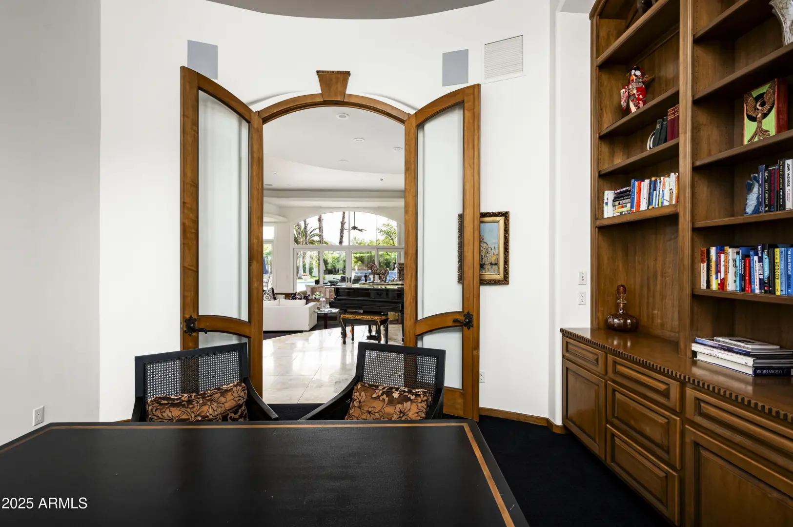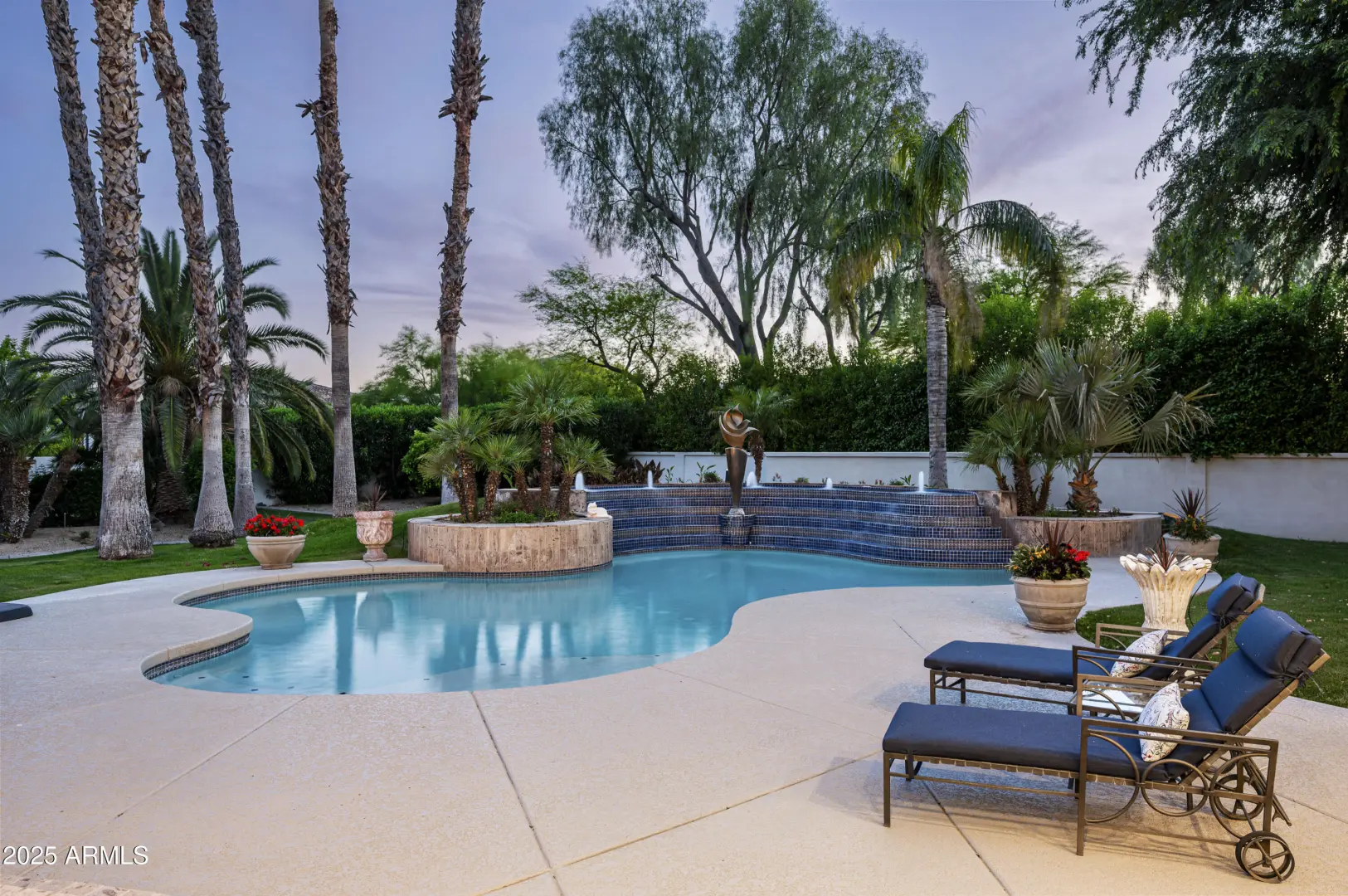 Welcome to your dream home in Paradise Valley! This stunning fully furnished property boasts 6213 square feet of luxurious living space and is situated on an acre lot at the end of a cul de sac in the beautiful York Estates. As you approach the property, you'll notice the lush desert vegetation and trees that surround the area, creating a tranquil and peaceful ambiance. This home is centrally located in Paradise Valley, just a short drive away from the Village Heath Club at Gainey Ranch and some of the best restaurants, shopping, and entertainment in Scottsdale. With 4 bedrooms, 4.5 baths, 2 offices, a movie theatre, and gym, this property has everything you need for a comfortable and luxurious lifestyle. The backyard is an oasis of relaxation and entertainment, featuring a covered