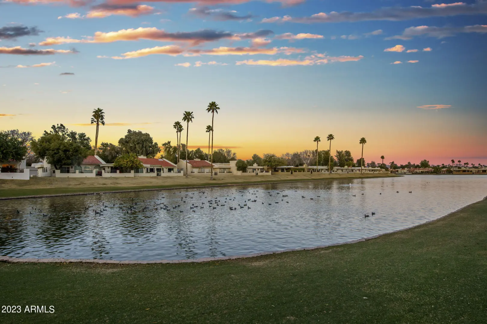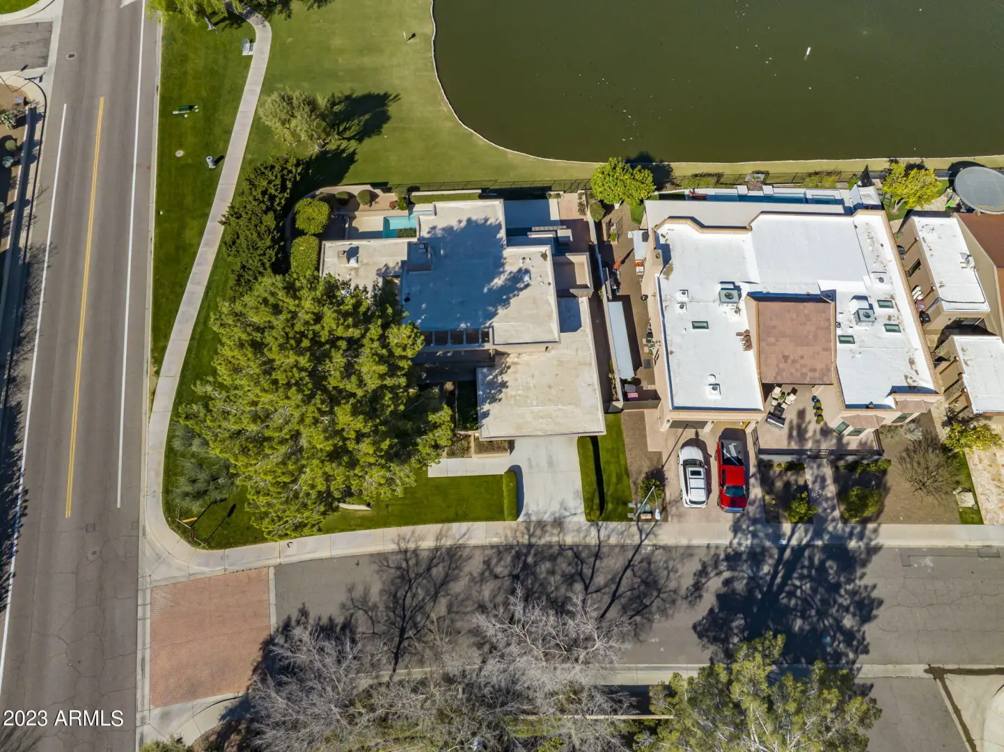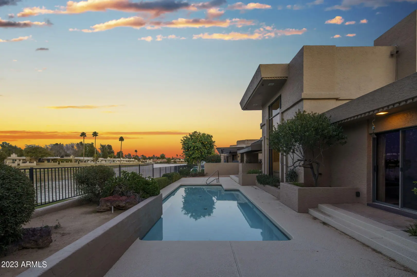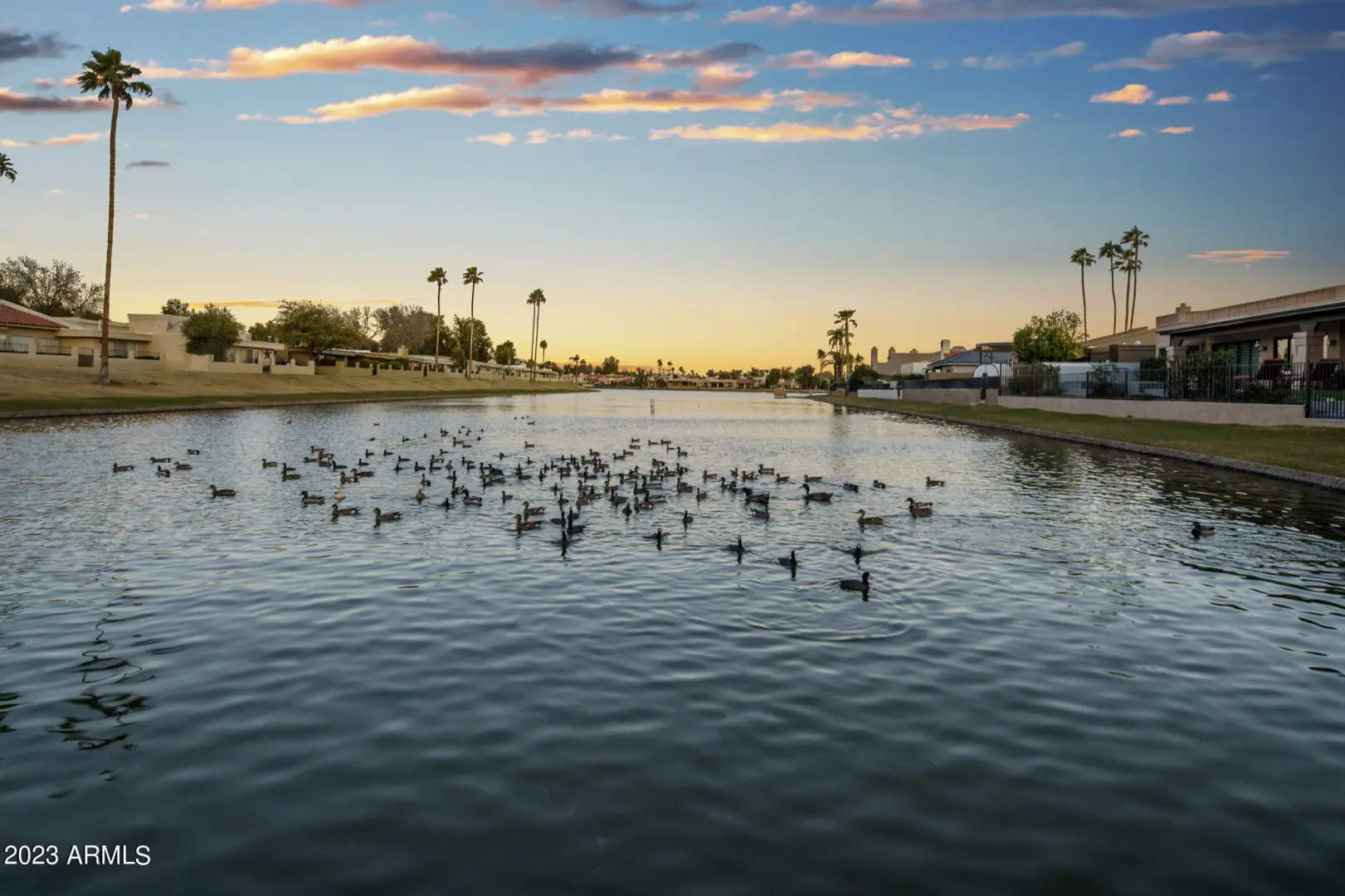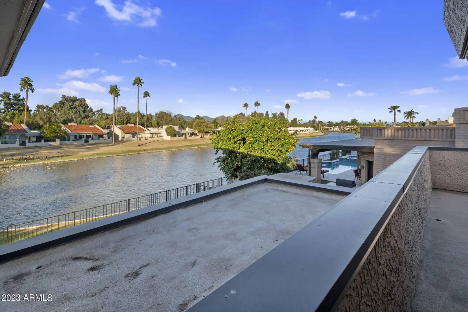 Recently updated Lake Front home designed by world renowned architect John Rattenbury. There are new modern bathrooms, blonde oak hardwood floors & fresh paint throughout. All bedrooms have en-suite baths & walk in closets! This is a rare opportunity to own this masterpiece with stunning architecture and design elements deeply rooted in the disciplines of Frank Lloyd Wright and Taliesin. The home is located on a large corner lot in McCormick Ranch - The Islands. This custom home backs to Lake Marguerite and offers mountain views. You are walking/biking distance to many great restaurants and shopping. The Indian Bend Greenbelt is just down the street! The lake is stalked with fish for those who enjoy fishing. The large master suite is downstairs and offers great views & a cozy fire place.
