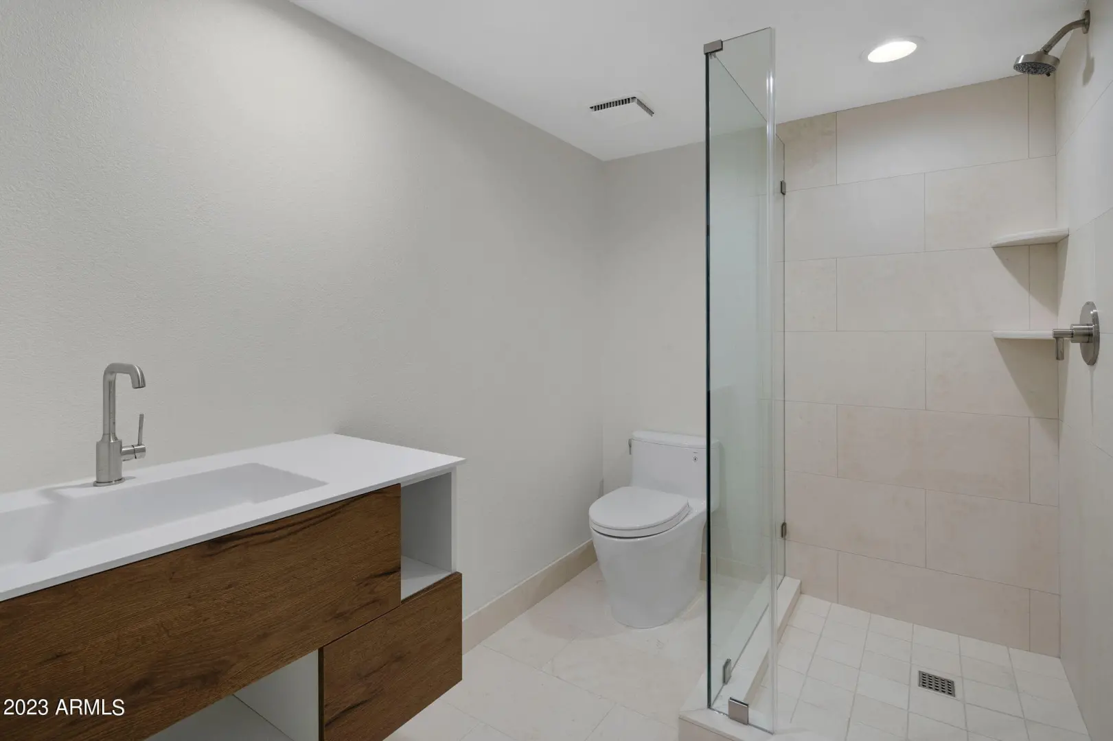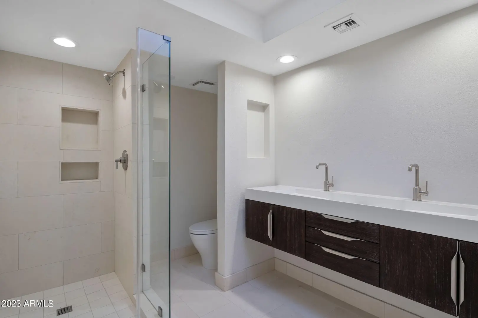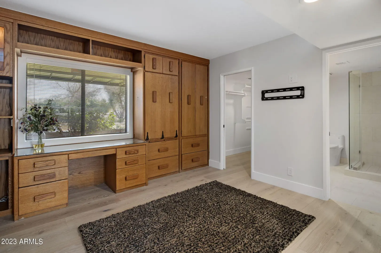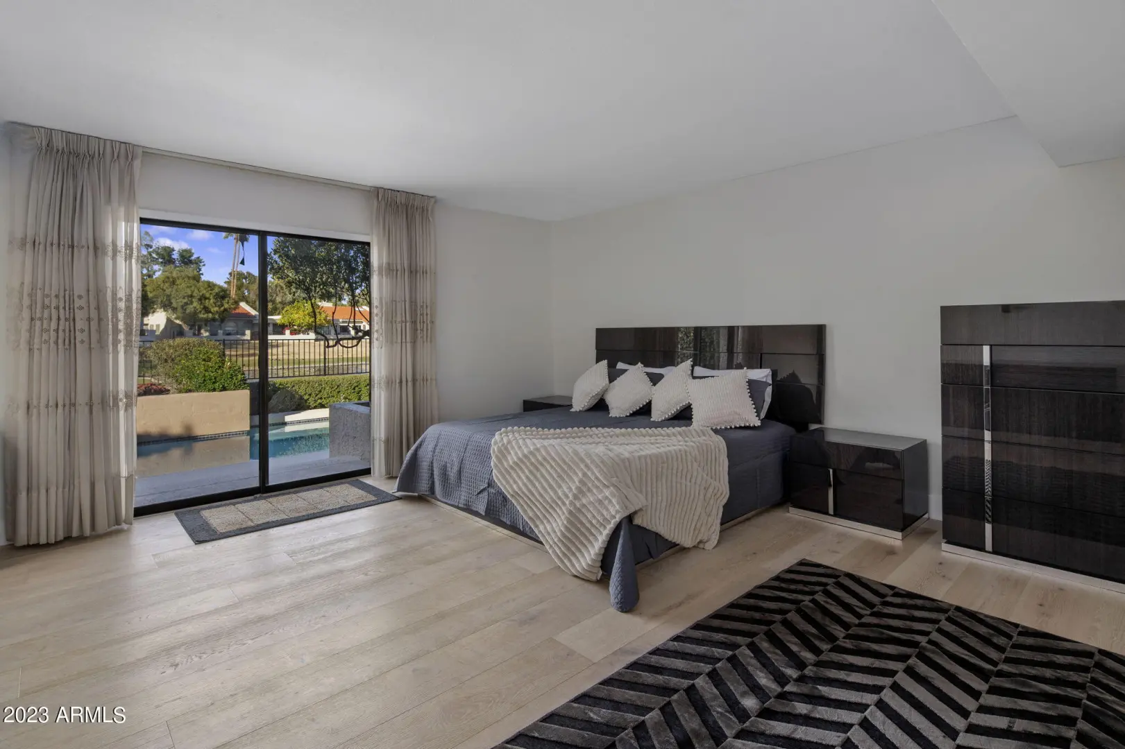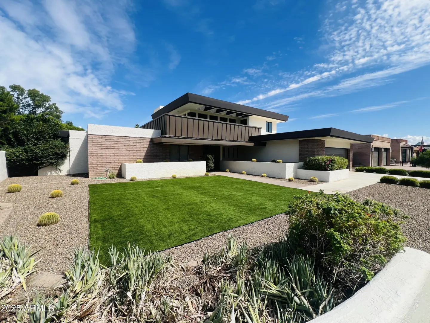 Recently updated Lake Front home designed by world renowned architect John Rattenbury. There are new modern bathrooms, blonde oak hardwood floors & fresh paint throughout. All bedrooms have en-suite baths & walk in closets! This is a rare opportunity to own this masterpiece with stunning architecture and design elements deeply rooted in the disciplines of Frank Lloyd Wright and Taliesin. The home is located on a large corner lot in McCormick Ranch - The Islands. This custom home backs to Lake Marguerite and offers mountain views. You are walking/biking distance to many great restaurants and shopping. The Indian Bend Greenbelt is just down the street! The lake is stalked with fish for those who enjoy fishing. The large master suite is downstairs and offers great views & a cozy fire place.